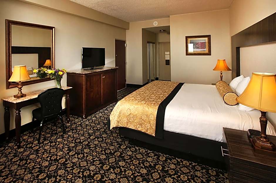 This room offers a spa bath, a wet bar, a Keurig coffee maker, a refrigerator, and a flat-screen TV.